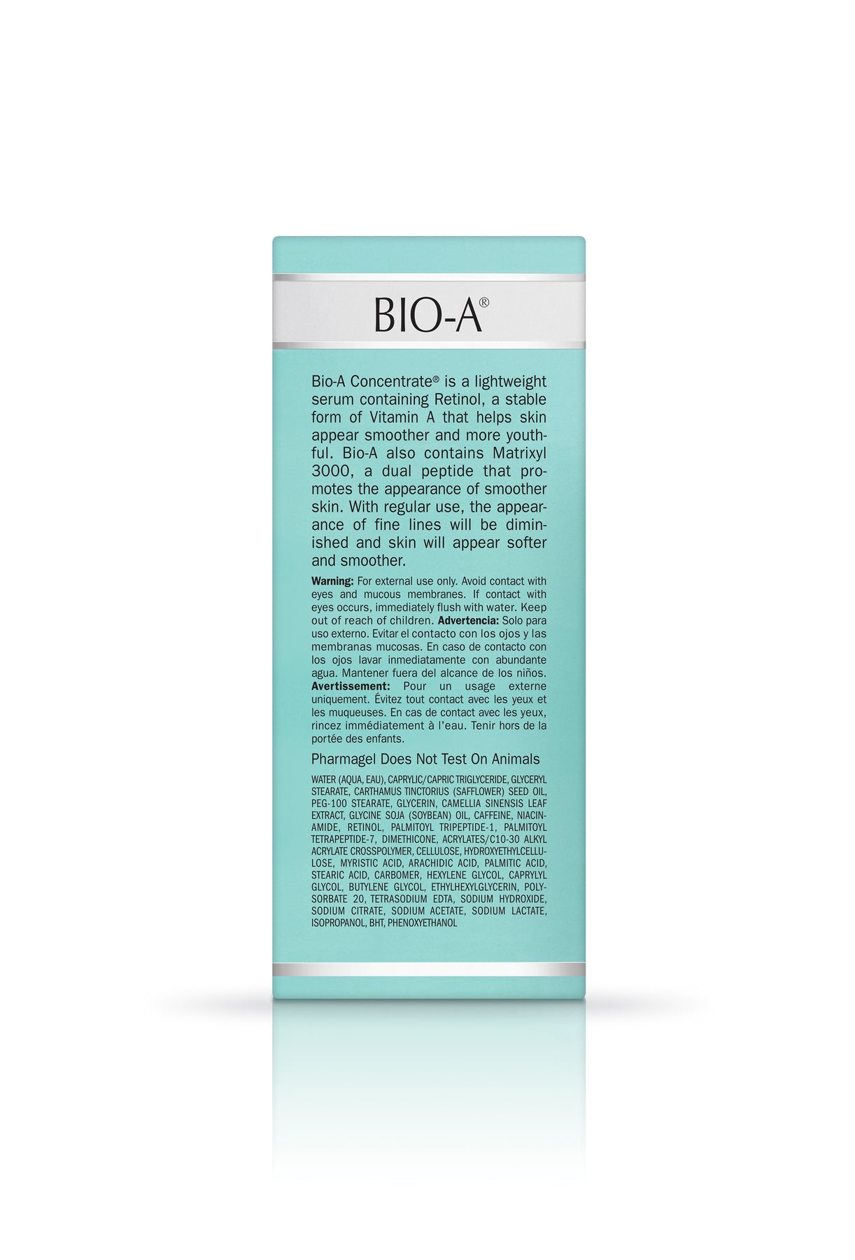 This lightweight serum contains Retinol, a stable form of Vitamin A that helps skin appear rejuvenated, along with a dual peptide ingredient that helps improve skin tone and restores skin to optimal radiance. Bio-A Concentrate® helps minimize the appearance of wrinkles, revealing a softer, smoother complexion. It absorbs rapidly to help improve skin's appearance, while also helping to calm the signs of environmental stress.
